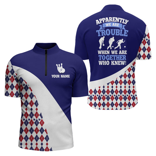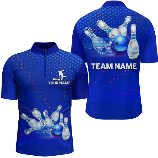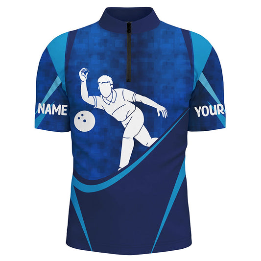 Men's Blue 3D Bowling Jersey - Personalised 1/4 Zip Shirt B308