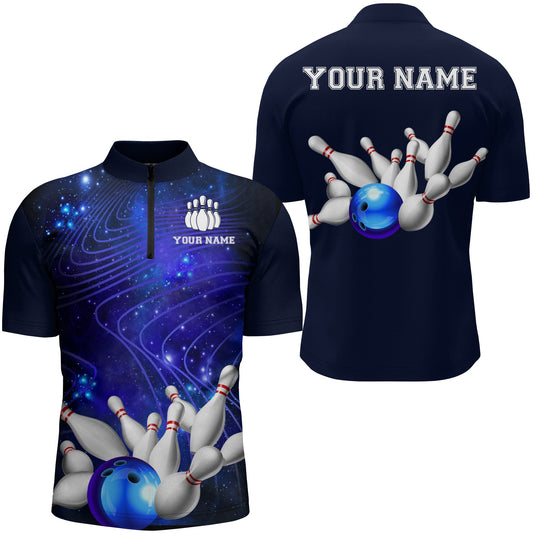 Men's Blue Bowling Polo Quarter Zip Jersey N7796