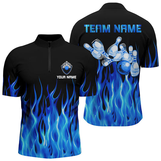 Men's Blue Flame Bowling Polo, Quarter Zip Team Jersey N8199