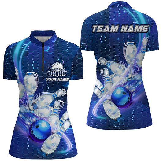Women's Bowling Quarter Zip Shirt - Custom Team Jersey, Blue N6266