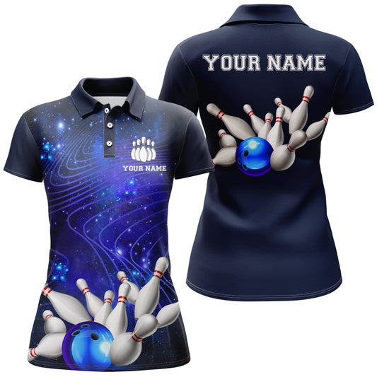 Women's Custom 3D Blue Bowling Polo Jersey B250