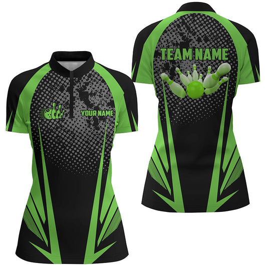 Women's Bowling Quarter Zip Shirt - Green/Black with Custom Name N4782