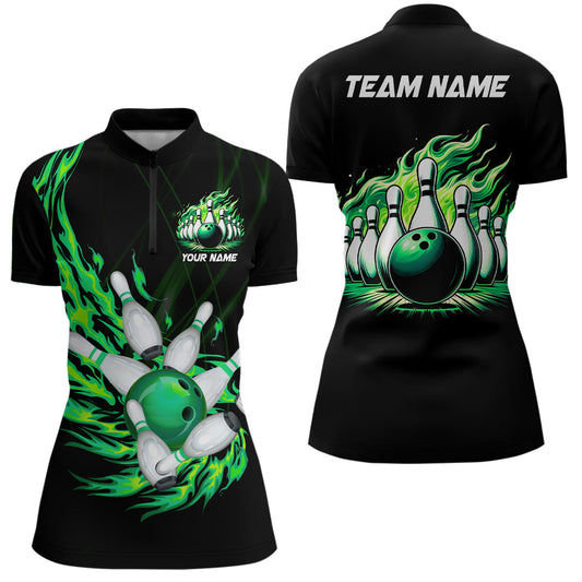 Women's Green Flame Bowling Quarter Zip Shirt N7516