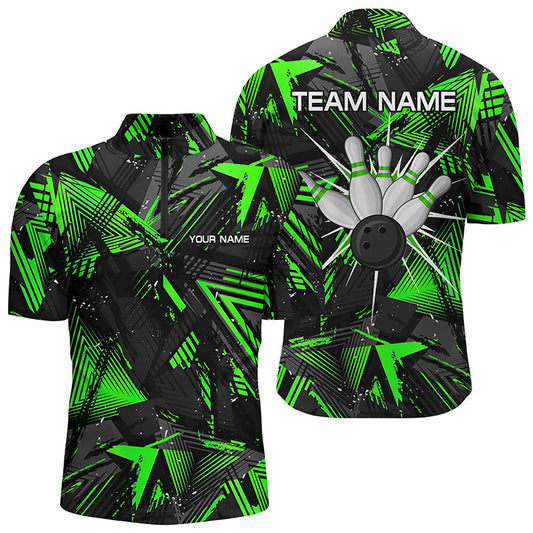 Men's Bowling Quarter Zip Shirt - Custom Green Lightning Jersey N7065