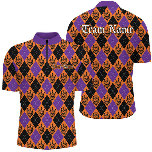 Custom Orange & Purple Argyle Halloween Bowling Shirt for Men I7302