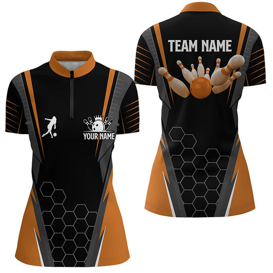 Black & Orange Women's Bowling Polo 1/4 Zip - Custom Team Shirt N7708
