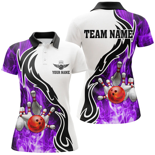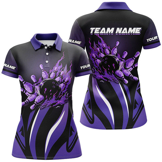 Women's Purple Bowling Polo Shirt - Custom Flame Team Jersey I5310