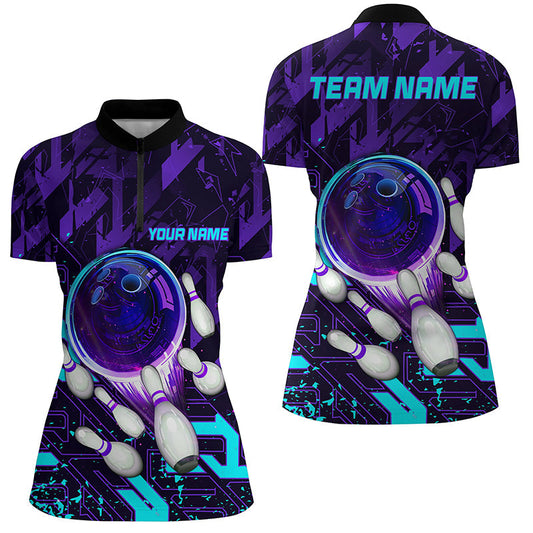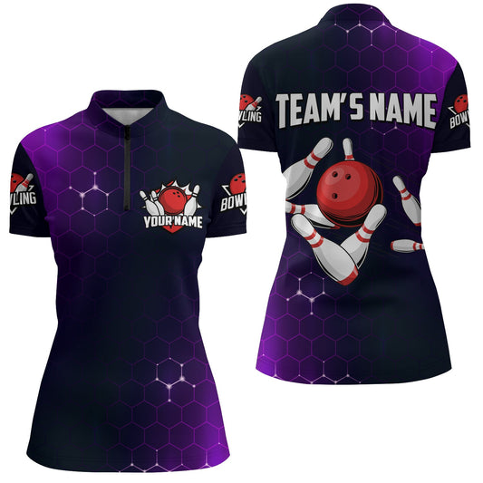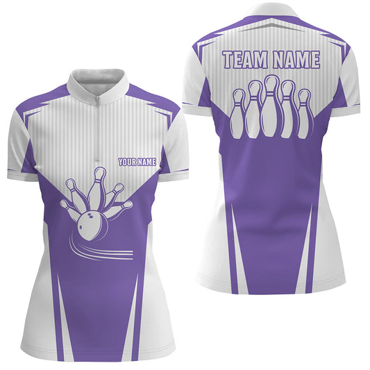 Women's Purple Bowling Quarter Zip Shirt - Custom Strike Team Jersey N6344