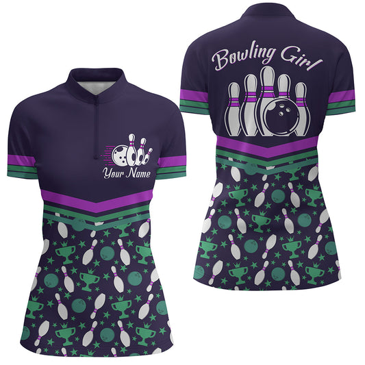 Women's Purple Bowling Quarter Zip Jersey with Custom Name B81