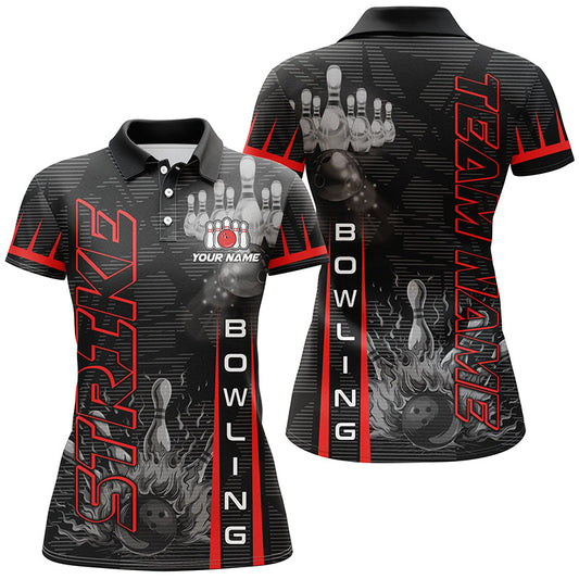 Women's Custom Red & Black Bowling Polo Shirt N4819