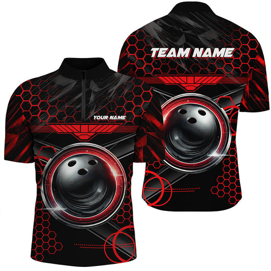 Men's Bowling Quarter-Zip Shirt - Custom Black & Red Team Design N7148