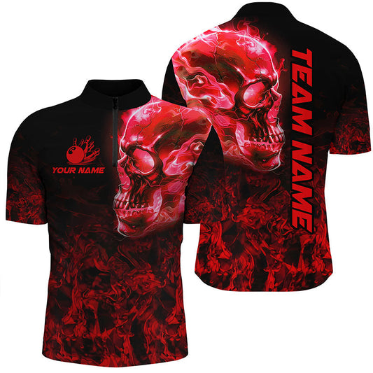 Men's Bowling Quarter Zip Shirt - Custom Black & Red Flame N7126