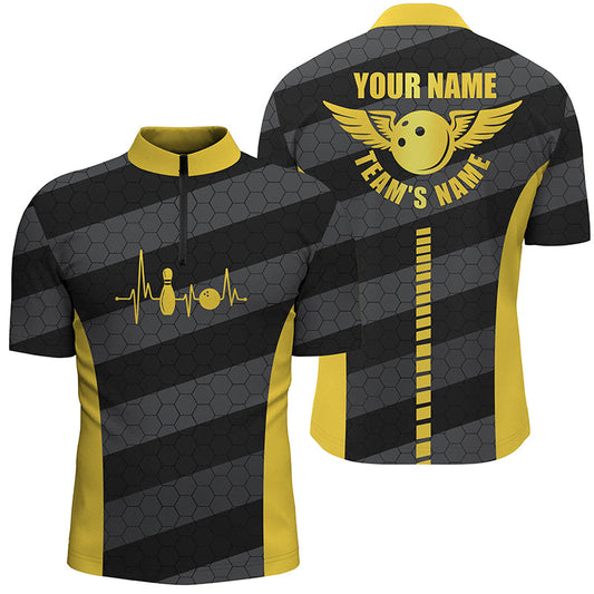 Men's Funny Yellow Bowling Quarter Zip Shirt - Custom 'My Drinking Team Has a Bowling Problem' N6870