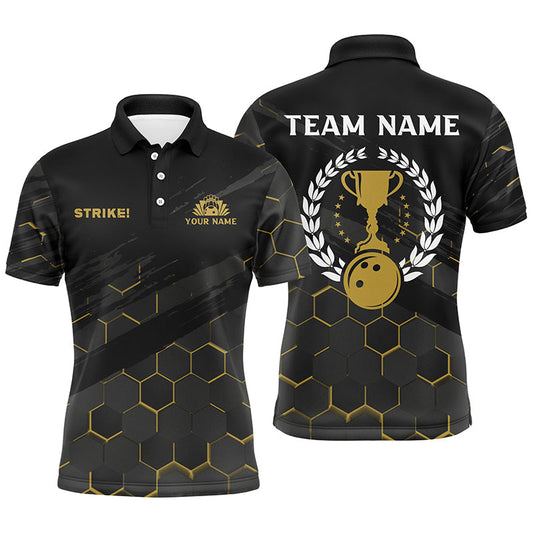 Black Men's Bowling Polo Shirt - Custom Strike Bee Pattern N6703