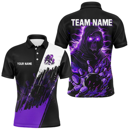 Black & Purple Skull Reaper Bowling Polo, 1/4 Zip Shirt for Men N8031