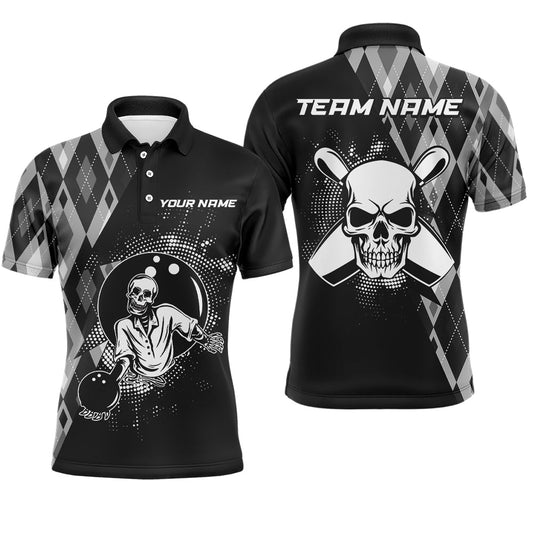 Funny Men's Bowling Polo Shirt - Personalised Skull Design N85