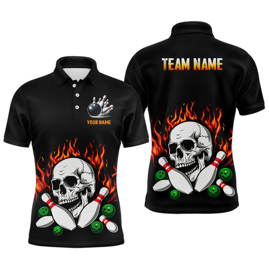 Flame Skull Bowling Polo Shirt for Men - Custom Team Jersey I5245