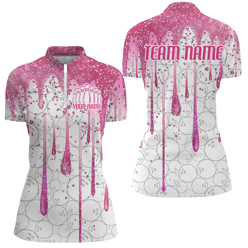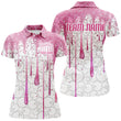 Custom Pink Glitter Breast Cancer Bowling Polo for Women I7051