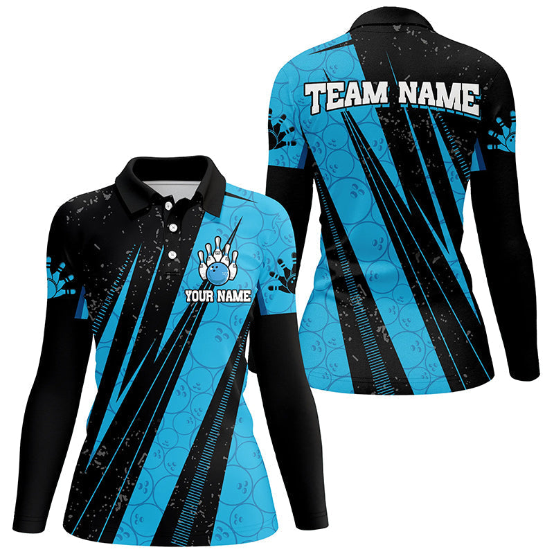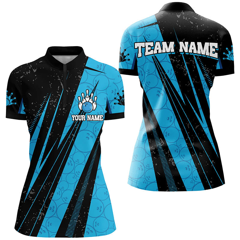 Women's Black & Blue Camo Bowling Polo, 1/4 Zip N8156