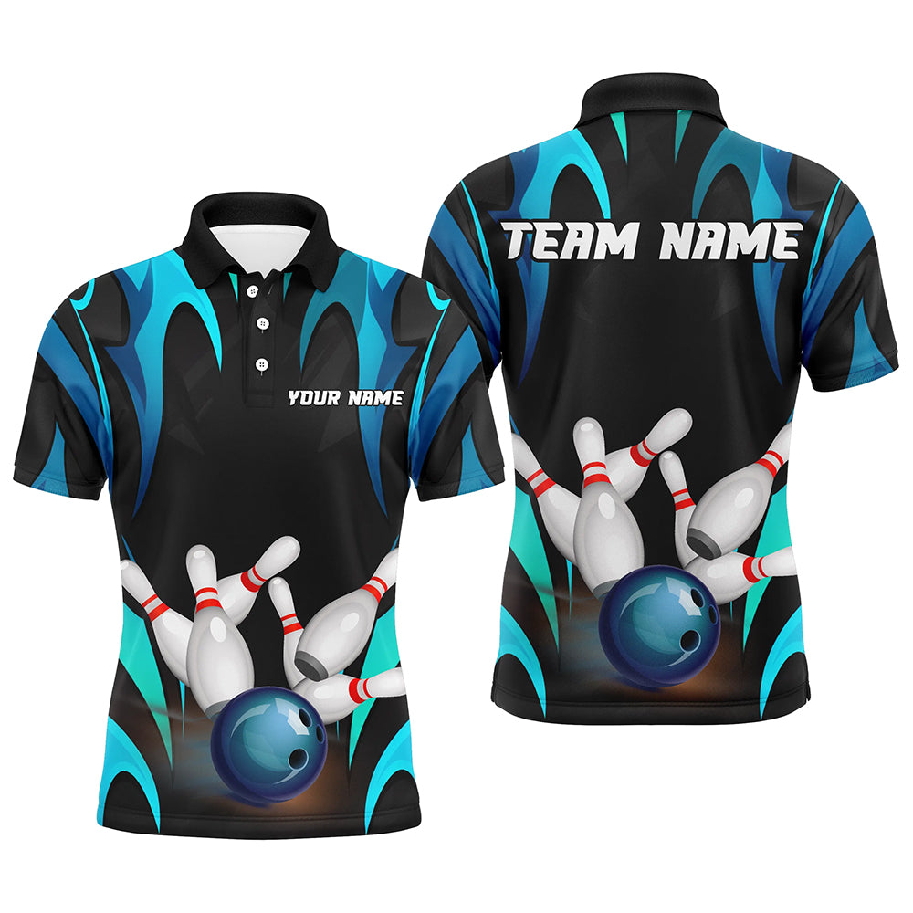 Men's Custom Black & Blue Bowling Shirts - Team Jerseys for Bowlers I7107