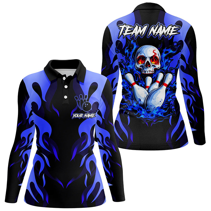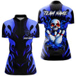 Women's Custom Black & Blue Flame Skull Bowling Shirt N8219