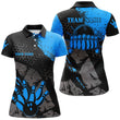 Women's Black & Blue Retro Bowling Polo Shirt N6314