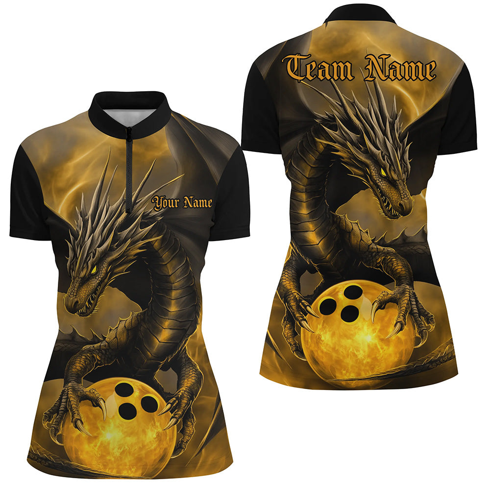 Women's Black & Gold Dragon Bowling Shirts I7308