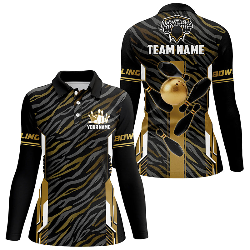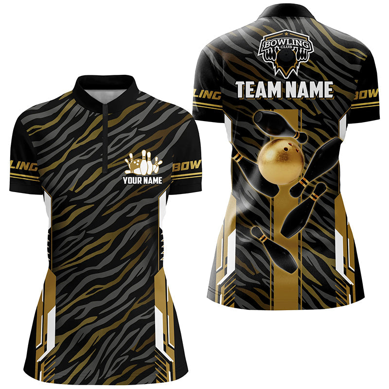 Black & Gold Zebra Bowling Shirt for Women - Personalised Team Jersey N8300