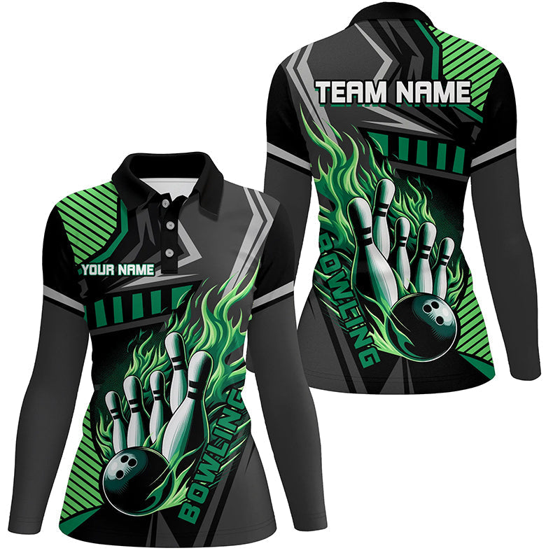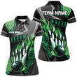 Women's Black & Green Bowling Polo Quarter Zip - Custom Team Jersey N7627