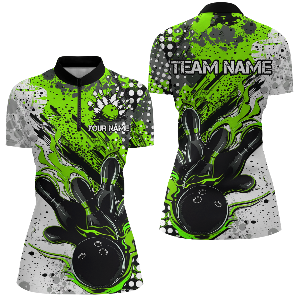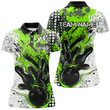 Black & Green Flame Ladies Bowling Shirts I7166