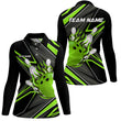 Women's Black & Green Bowling Polo Shirt with Flame Design N7386