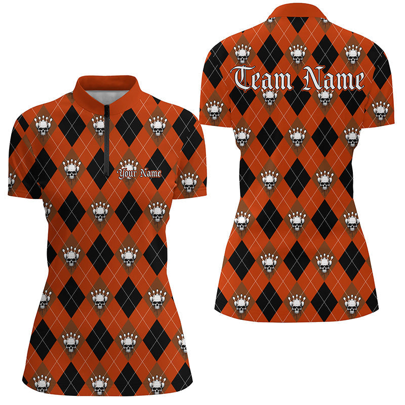 Black & Orange Argyle Ladies Bowling Shirt - Halloween I7300