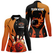 Women's Black & Orange Flame Bowling Polo, Quarter Zip N7799