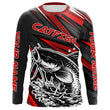 Black And Red Catfish Fishing Jerseys, Custom Catfish Fishing Long Sleeve Fishing Shirts IPHW7021