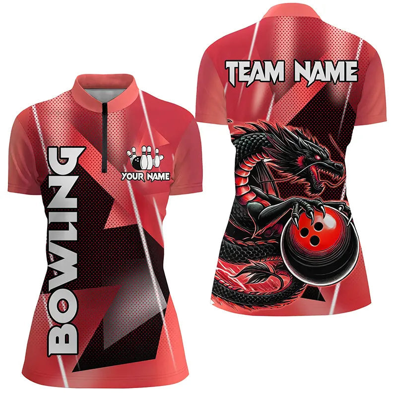 Women's Black & Red Dragon Bowling Team Shirts N8382