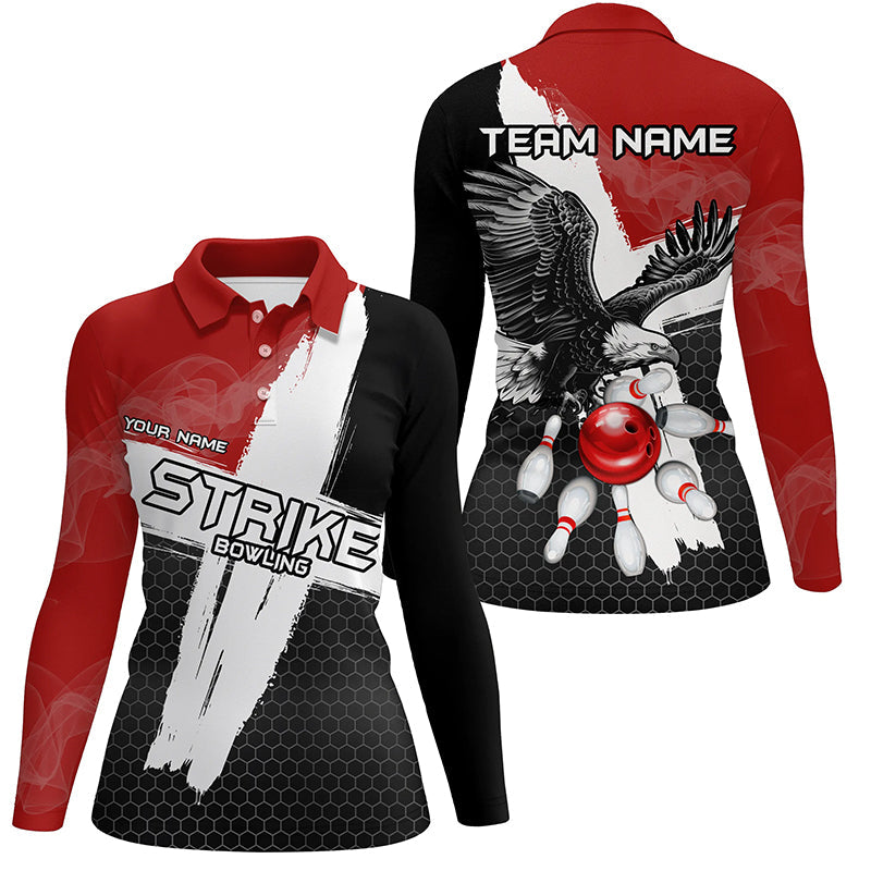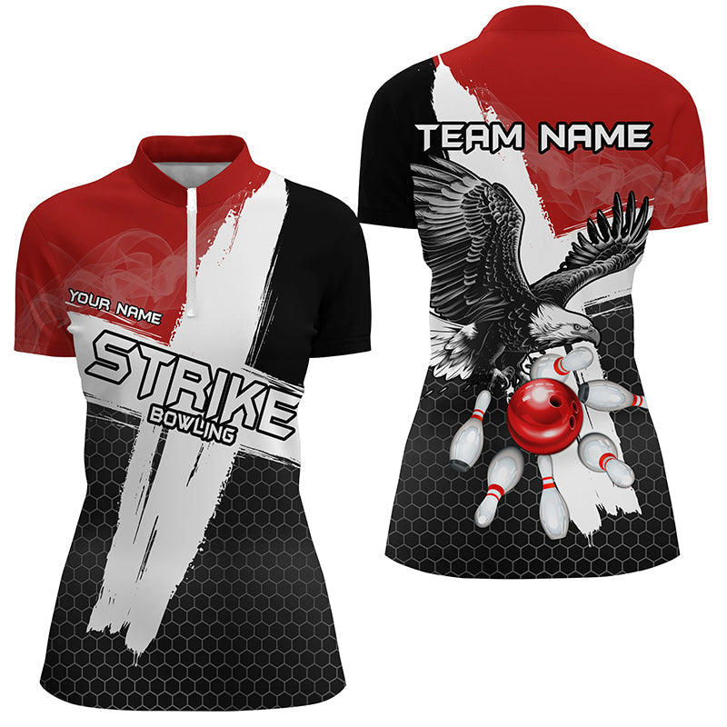 Black/Red Eagle Strike Women's Bowling Polo, Quarter Zip N8218