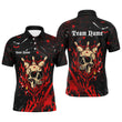 Men's Black & Red Flame Bowling Skull Halloween Shirt N8155