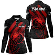 Women's Black/Red Flame Camo Bowling Polo, Quarter Zip Jersey N7914