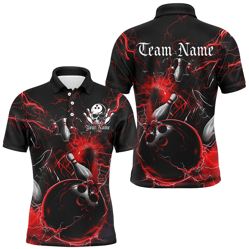 Men's Custom Black & Red Thunder Bowling Shirts I7261