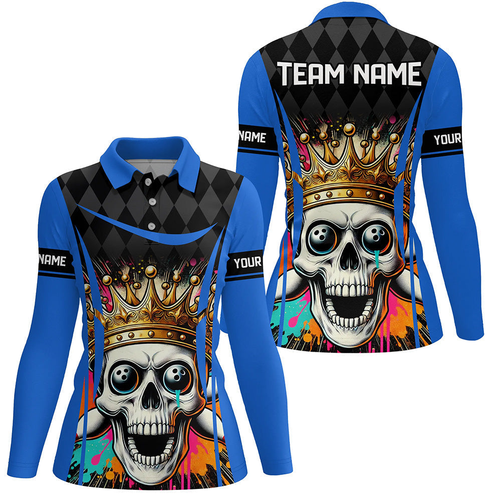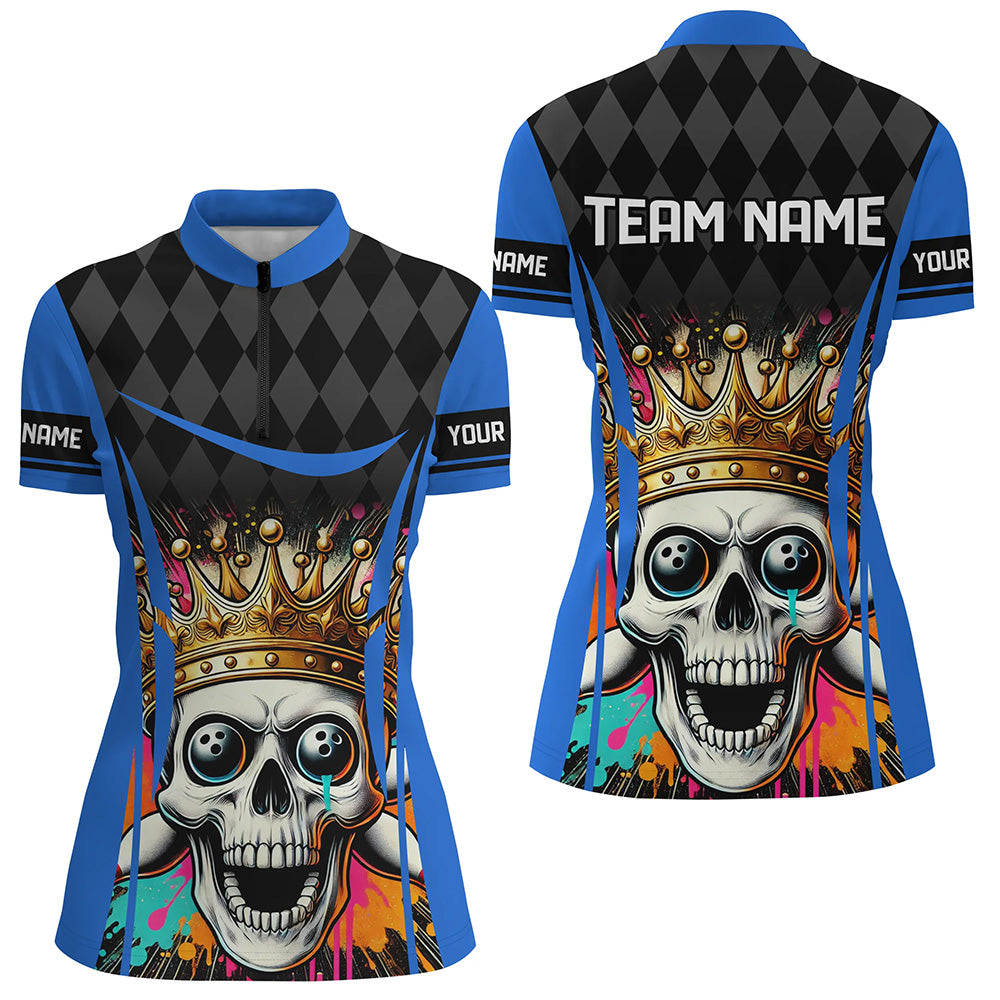 Black Argyle Skull Bowling Shirt for Women - Custom Team Jersey N8380