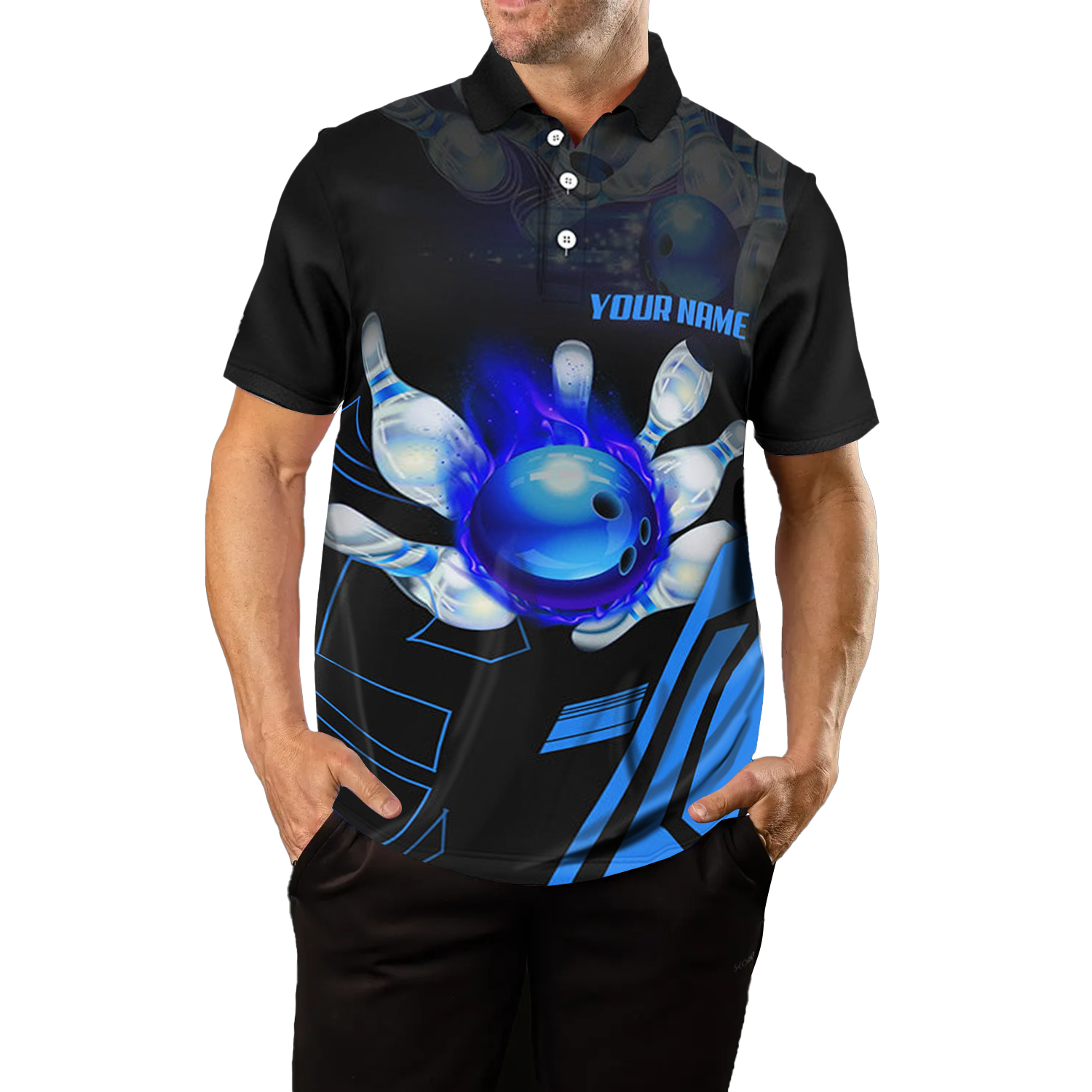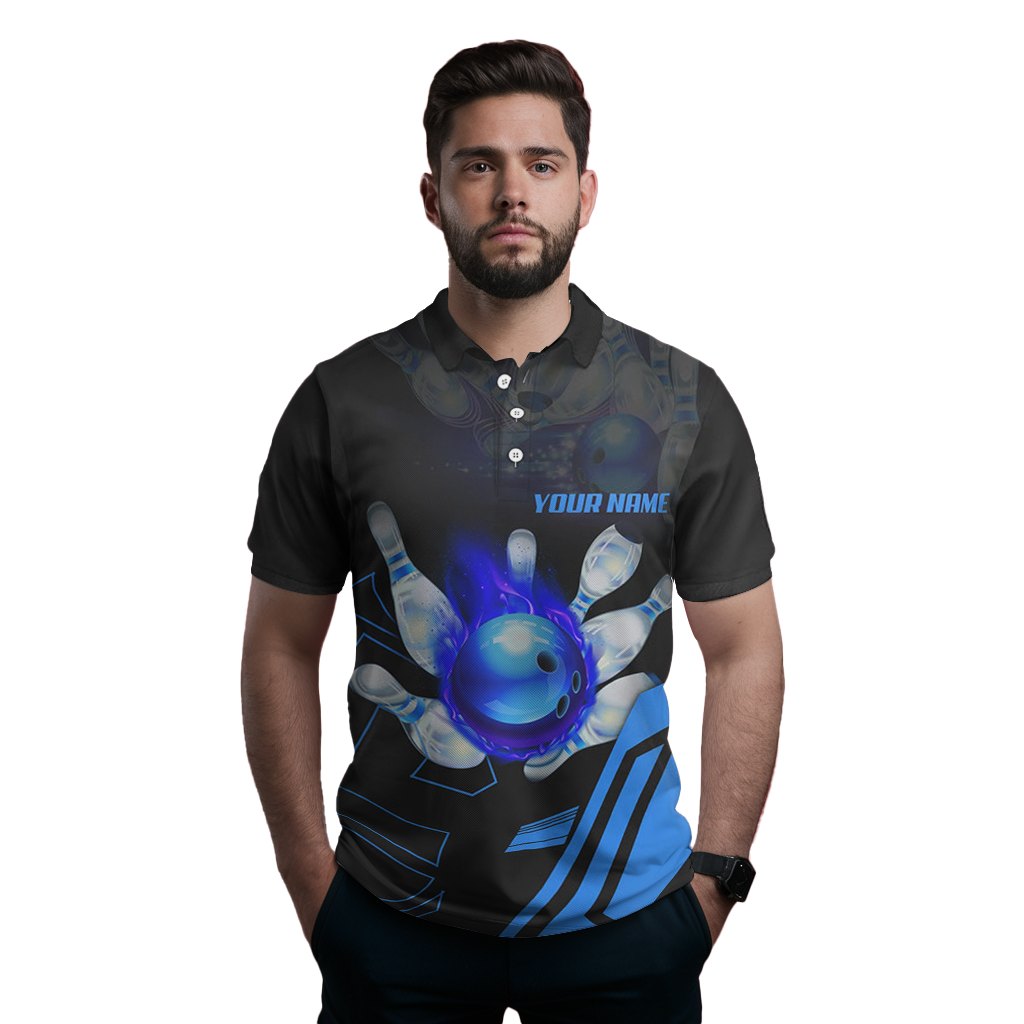 Black Flame Bowling Polo Shirt for Men - Custom Team League, Blue N6557