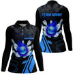 Women's Custom Blue Bowling Polo Shirt - Black Flame Design N6557