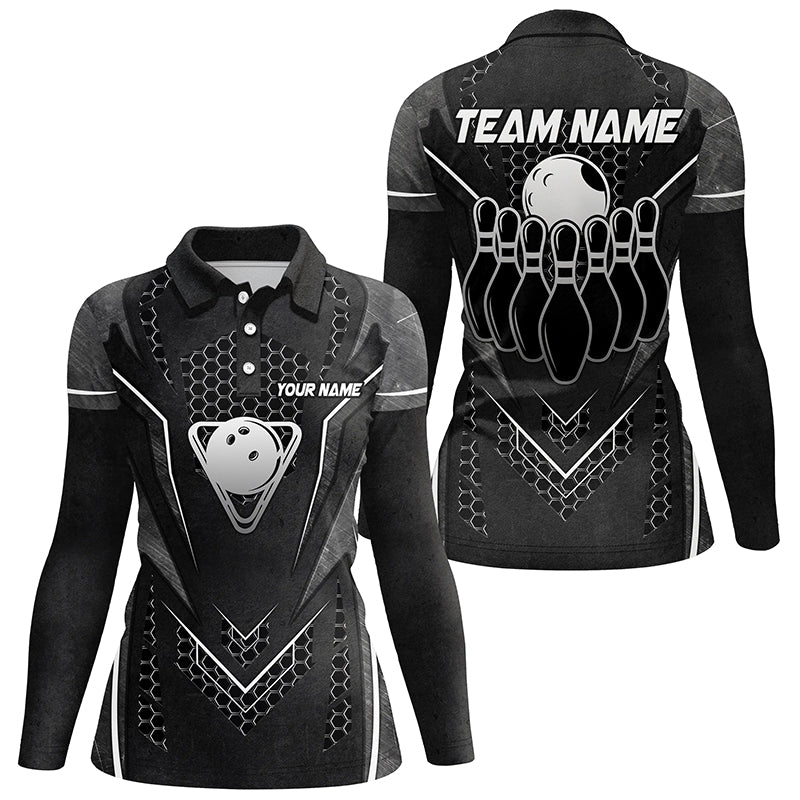 Women's Custom Team Bowling Shirts - Black Hexagon Pattern N8328