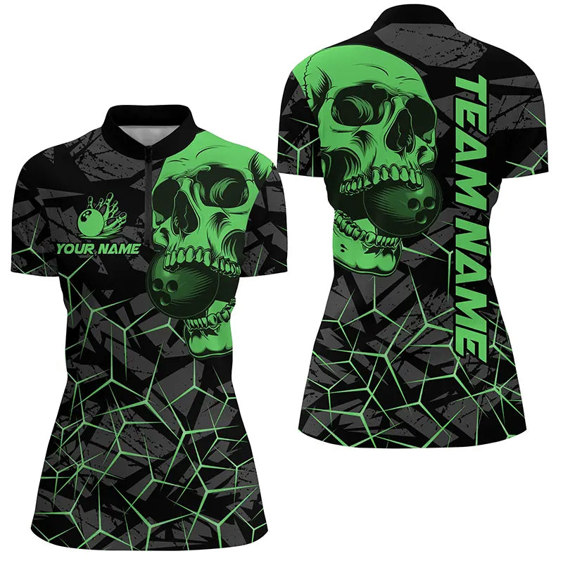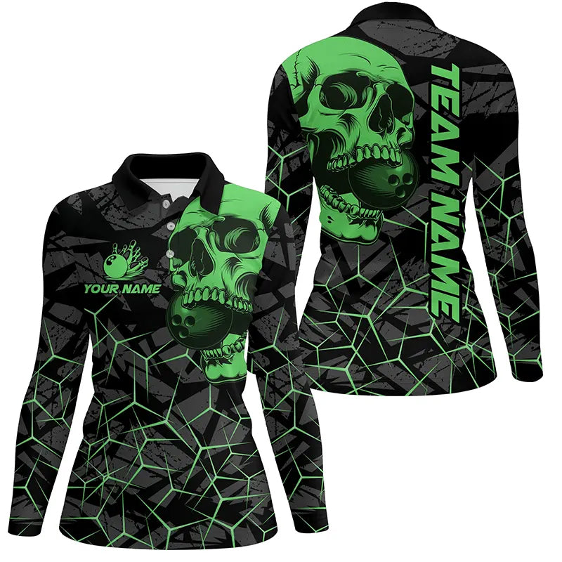 Green Skull Camo Bowling Shirt for Women - Custom Team Jersey N7715