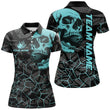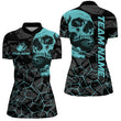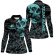 Turquoise Skull Camo Bowling Shirt for Women N7567