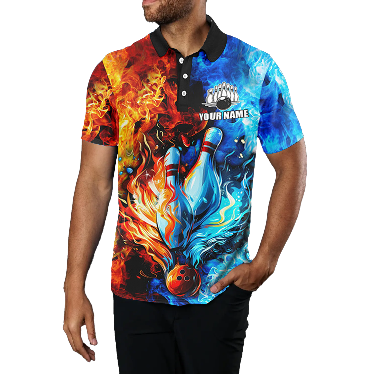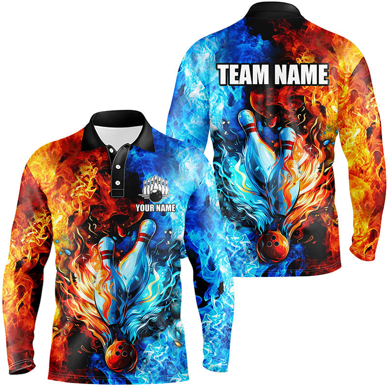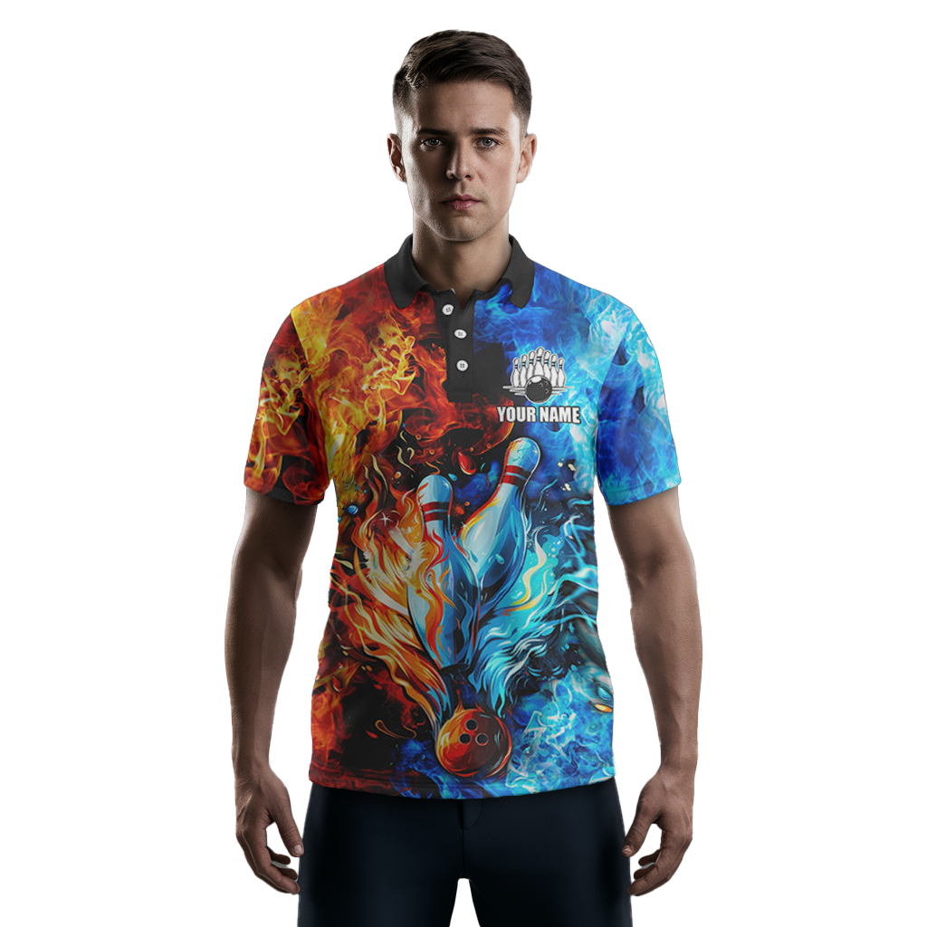 Blue/Orange Flame Bowling Polo, Men's Quarter Zip Team Jersey N7749
