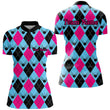 Custom Ladies Bowling Shirt - Blue & Pink Argyle I7306