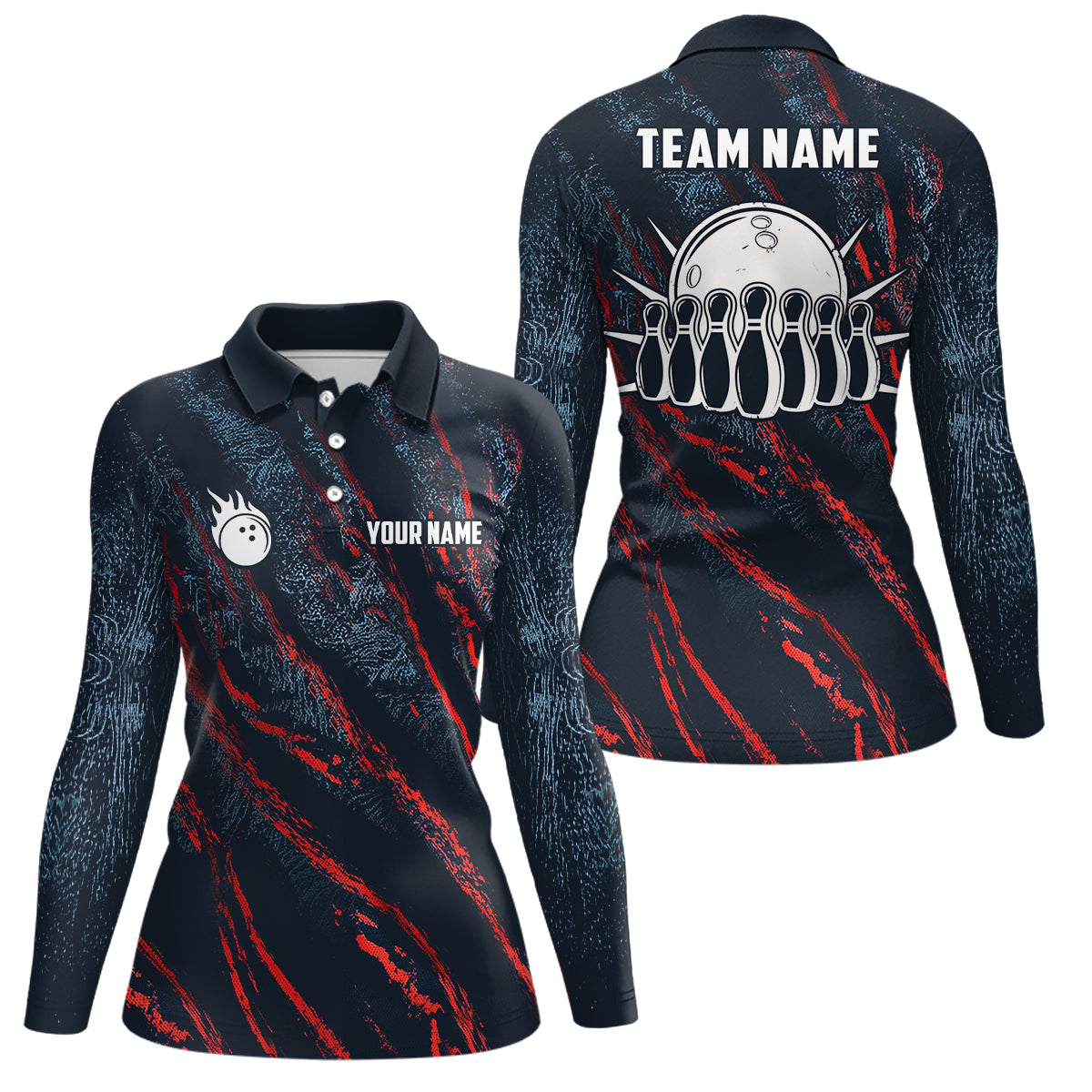 Women's Custom Camo Bowling Polo Shirt - Blue/Red N6554