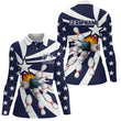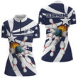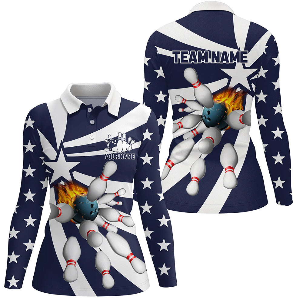 Women's Blue & White Quarter Zip Bowling Polo - Custom Flame Team Jersey N7820