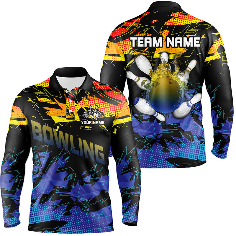 Men's Blue & Yellow Camo Bowling Polo Shirt N7284